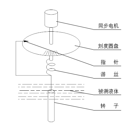 所示,同步电机以稳定的速度旋转,连接刻度圆盘,再通过游丝和转轴带动转子旋转。如果转子未受到液